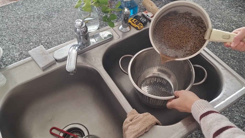 - Add lentils and water to a pot.