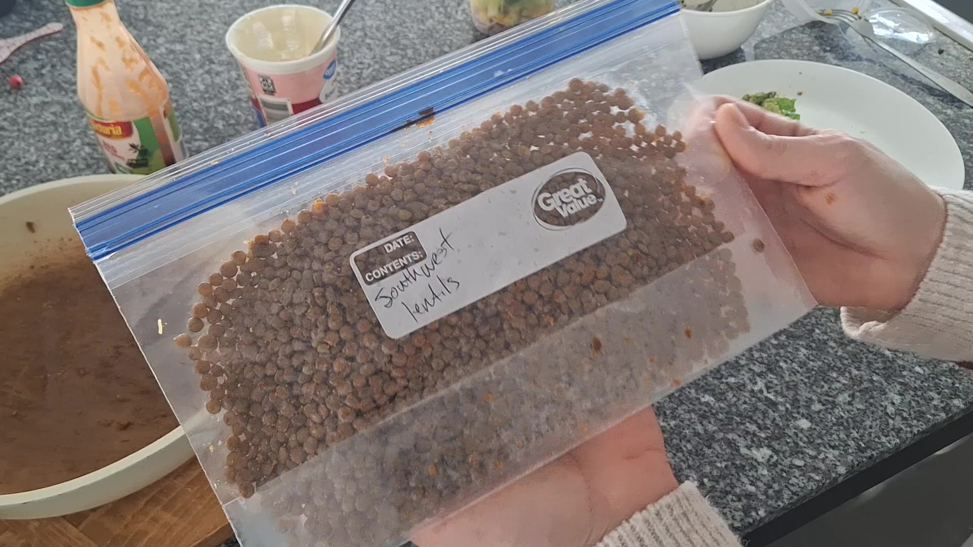 - Store lentils, corn, and cheese together