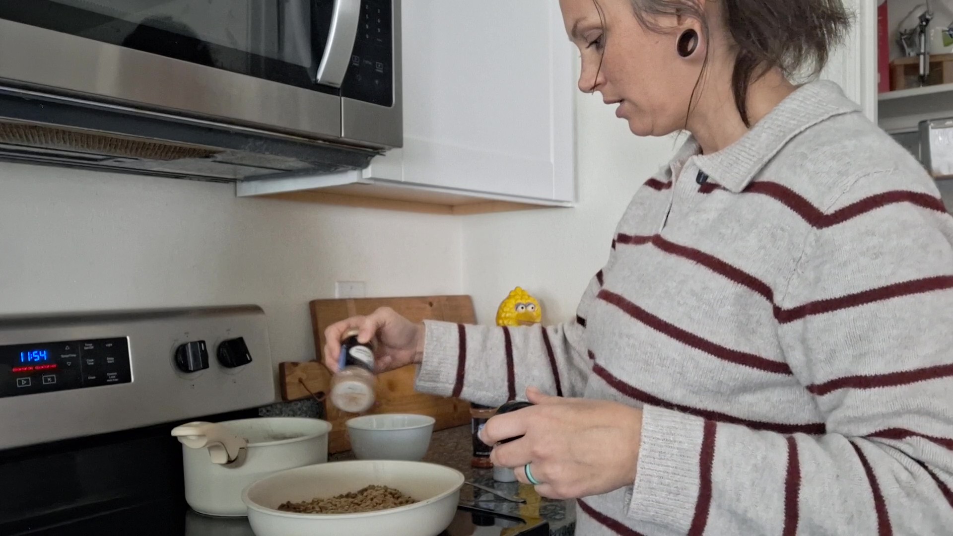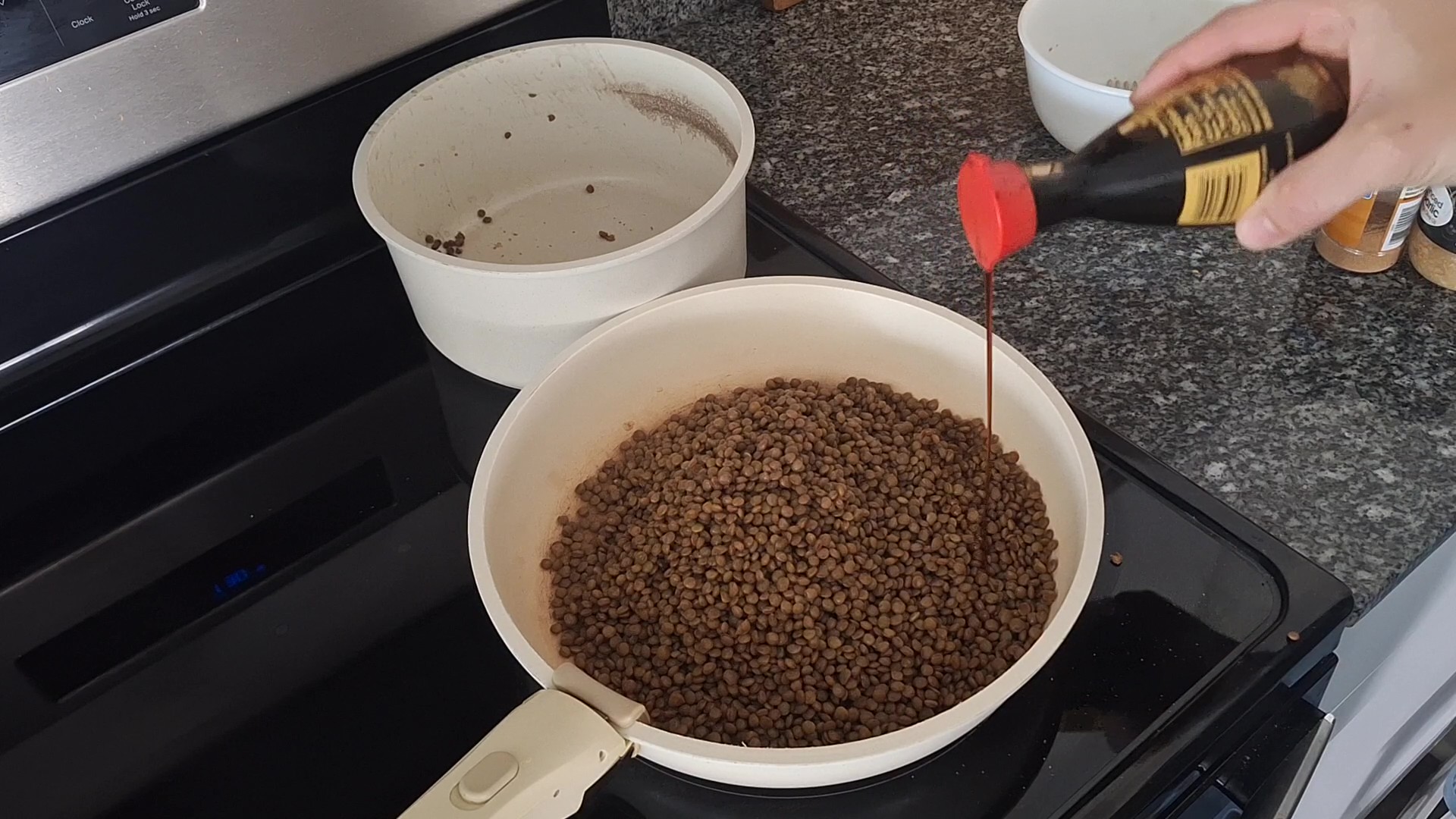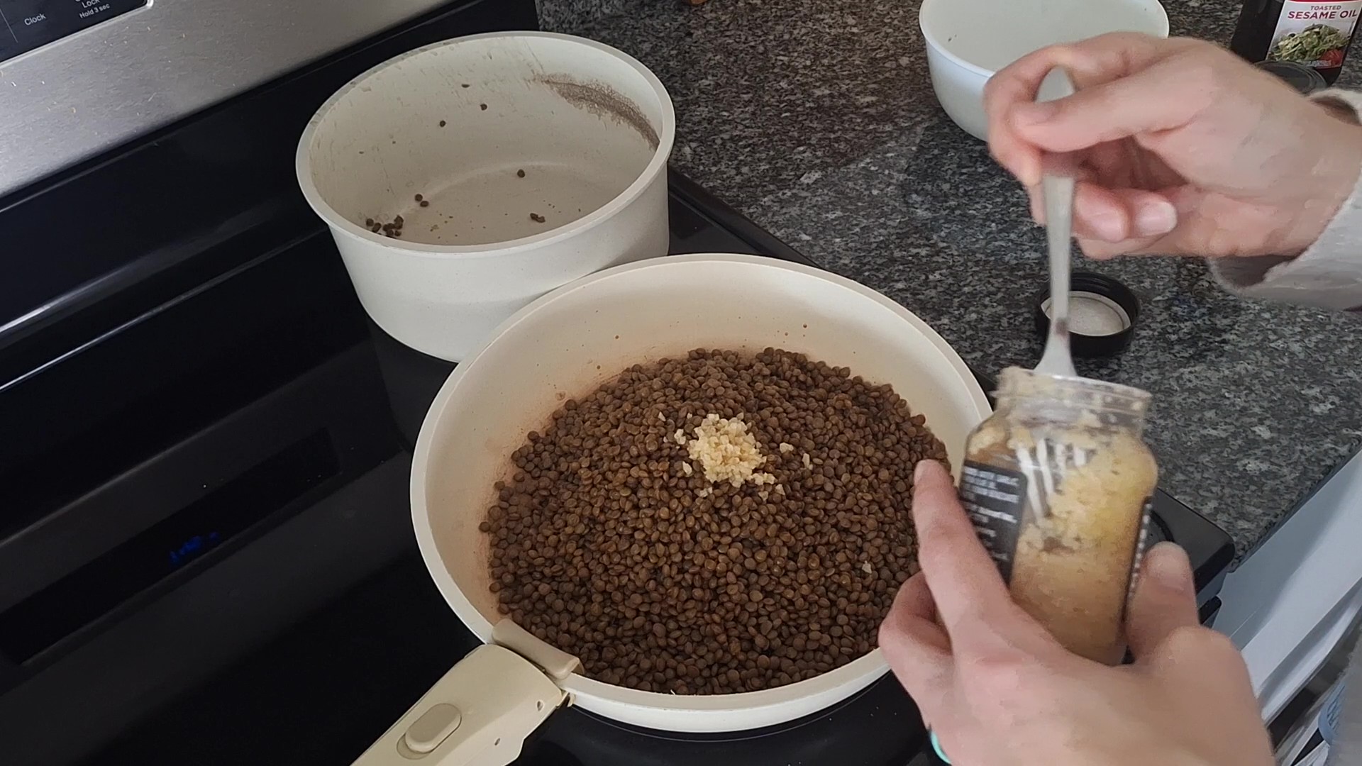 From here, we divide the lentils and season them two different ways.