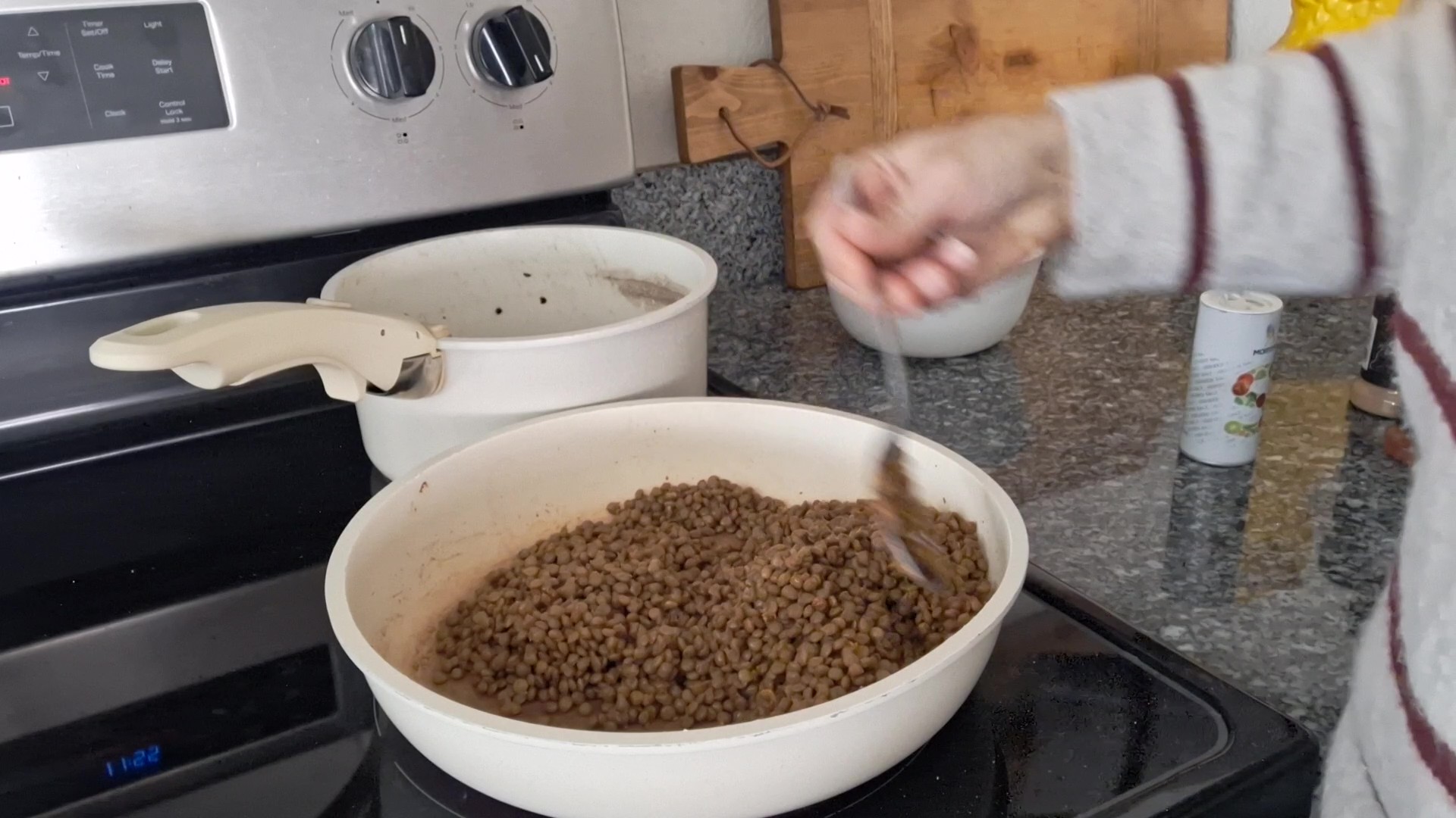 For the second half of the lentils, return them to the stove over medium heat.