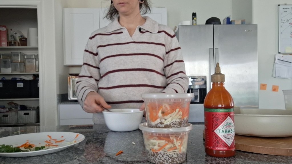 If you’re meal prepping, you can portion everything into containers and microwave together. The heat softens the cabbage and carrots just enough to make everything blend beautifully.